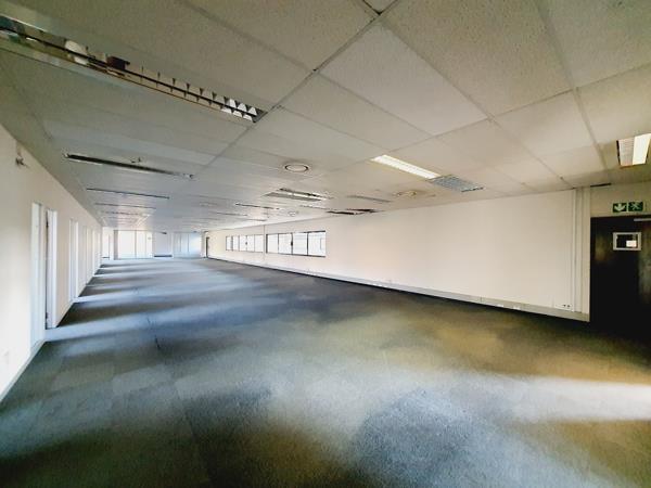 This unit comprises the entire first floor of Block C. It features a floor area of 1230.09 m2, neat entrance with a wheel chair ramp, large welcoming reception area, a north facing wing & a south facing wing separated by a huge double volume atrium sitting on the ground floor, separate gents'' & ladies'' restrooms shared by the 2 wings, 3 store rooms, 1 server room, air conditioning, carpeted floors in all offices & motion triggered lights. The north facing wing comprises 1 large open plan office spanning most of the length of the wing, 10 medium modular offices, & 2 large modular offices. The south facing wing comprises 2 large open plan offices, 5 large modular offices, & 8 medium modular offices. There is 1 medium modular office opening into the eastern foyer between the 2 wings. There is ample basement parking space accessible from the building reception area, plus shade net covered as well as open parking bays outside. Basement parking bays cost R550/bay. Shade net covered parking bays cost R350/bay. Open parking bays cost R/bay. The prices per sqm and monthly pricing are listed as Net Price.