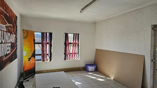 Located within an access-controlled office complex, this 614 m2 office space is available immediately at a rental rate of R70/m2. This commercial space is ideally suited for a church. This space offers good proportions with tiled flooring, good quality lighting, kitchen and secure parking. On-site parking is also available.