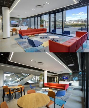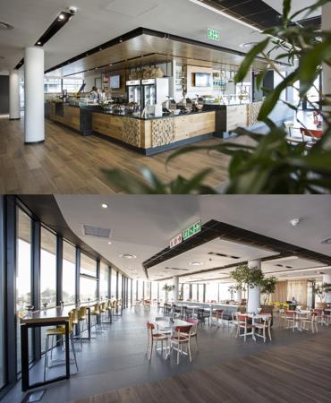 A contemporary on-site cafe and stylish canteen for staff convenience