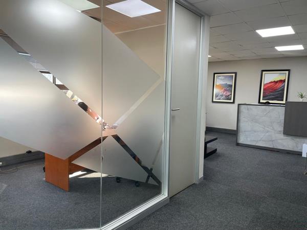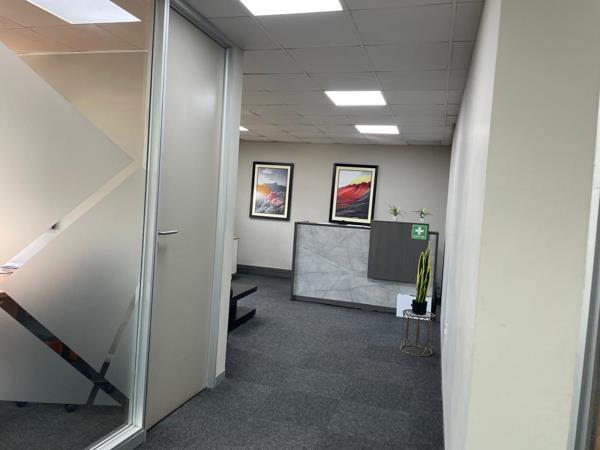 Office space available to let at Saligna Crescent, International Business Gateway, Midridge Park, Midrand. This 137 sqm office suite is designed to meet a variety of business needs, offering a functional layout that includes private offices, a boardroom, and open areas. The space features carpeted flooring throughout, standard lighting, and generous natural light that creates a comfortable working environment. Air conditioning is installed to ensure year-round comfort. Four parking bays are included in the rental of R 26,091 per month, excluding VAT and utilities, providing excellent convenience for staff and visitors.