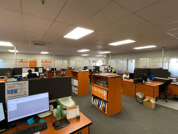 This unit is approximately 2398m2, consisting of warehouse space of 1,904 m, Warehouse Ablutions & Canteen: 43 m, Ground Floor Offices: 213 m, First Floor Offices: 238 m, together with all the amenities.