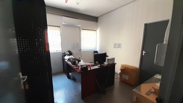 The warehouse features a 6m height, screeded flooring, sprinkler system, fibre infrastructure, backup power, and three phase electricity with 150 amps. Two roller shutter doors provide access to the warehouse floor. The office component includes a reception, boardroom, kitchenette, ablutions, and eight closed offices, supporting professional business operations. The yard is paved and securely enclosed with one access point.