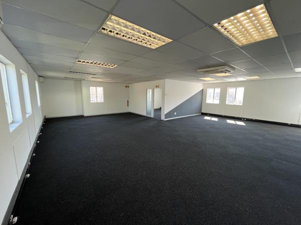Renovated fitted out suite of offices in Corporate Park South, Midrand to rent at only R72.00/sqm plus VAT and consumables & parking. Made up of large open plan & 3 separate offices on 1st floor. Ablutions & kitchenette shared with only 1 other tennant. Parking on ground floor, outside the main entrance. In addition to access control at Corporate Park South main entrance, there is also access control at entrance to the office park. Occupation from 1 September.