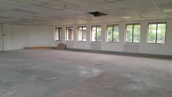 This 186m first-floor office unit is situated in Howick Gardens within the secure and well-located Waterfall Office Park in Midrand. The space offers a clean white box layout with screeded concrete flooring, providing an open-plan environment ideal for a custom tenant fit-out. The layout allows for flexible design options, from collaborative open-plan workspaces to partitioned offices. Communal ablutions and a shared kitchen are available within the building.