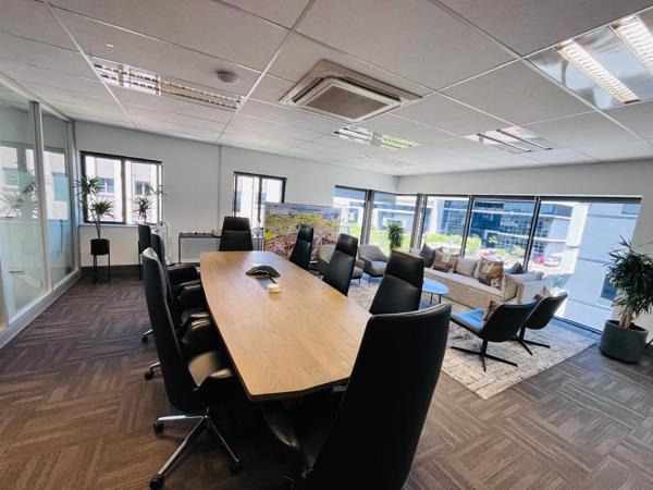 This first floor office space, measuring just over 1300m2, is already beautifully fitted out, and available from February 2025. It opens into a classy reception area, with stunning views over the well-manicured Waterfall precinct, and the office is a combination of both open-plan space, closed offices, meeting rooms and boardrooms of various sizes.