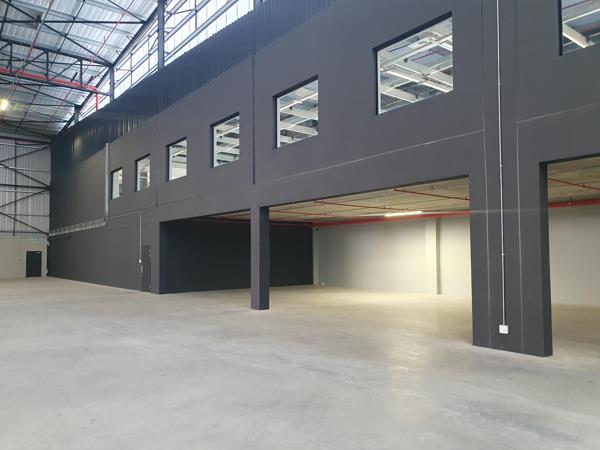 A new warehouse to rent in the Waterfall Logistics Precinct, measuring 4 883sqm''s. The warehouse, which has a height of 10m, currently has 1 roller-shutter door accessed via drive-up ramp & a 2nd roller door with a dock-leveler. Provision has been made for a further 2 roller-doors with dock-levelers. The receiving/despatch concreted hardstand measures 40m in width, so will accommodate interlinks. roof sprinkler system in warehouse. 3 phase power. LED lights throughout low flow sanitary fittings insulation to roof & roof designed to accommodate solar panels. Offices are located on the upper level, overlooking the warehouse, with a tenant installation allowance for carpeting, partitioning, etc.