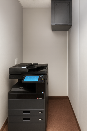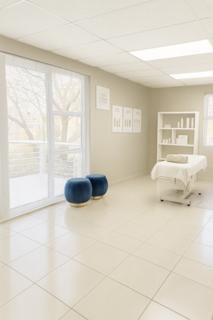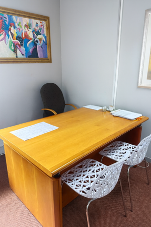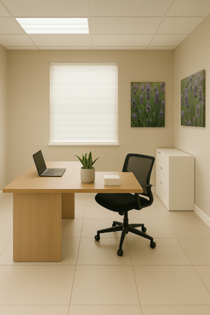 The space features a welcoming reception area, multiple private offices, an open-plan workspace, boardroom potential, and kitchen and restroom facilities all on one level. Large windows provide plenty of natural light, creating a bright and productive environment.