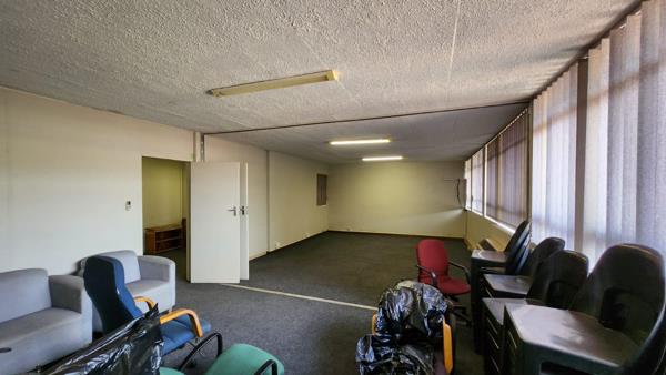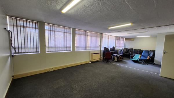 This neat office space comprises out of a reception area, 2 closed offices with 1 open-plan office compartment, a boardroom, and access to 2 sets of ablutions. The office features air-conditioning, neat carpet flooring, and large windows with blinds that allow for ample natural light to filter in. This office space has other additional amenities such as ready-to-go fibre connections and elevator access, making it wheelchair friendly for tenants or clientele.