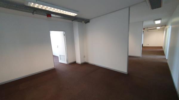 Nedbank Plaza is based in the bustling area of Arcadia, situated at 361 Steve Biko Road, Pretoria. The 758 square unit is the whole second floor of the building, and it comprises out of an open-plan office space and 3 closed office components. The working space is fitted with neat carpeted flooring and large windows allowing natural light to brighten up the working space. Nedbank Plaza offers communal facilities including the reception area, a kitchen and ablutions. The working space features air-conditioning to contribute to enhancing the air quality in the workplace.