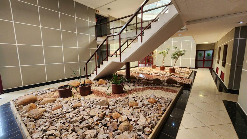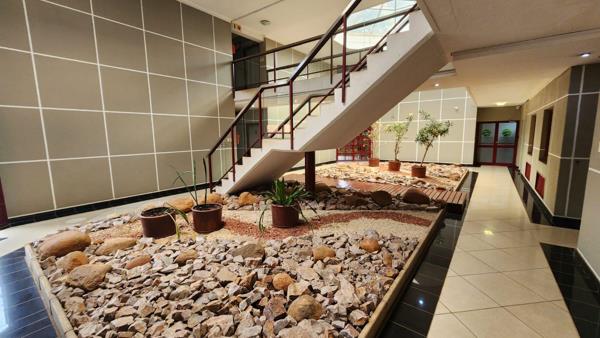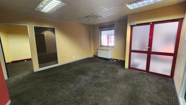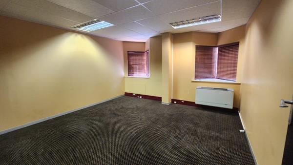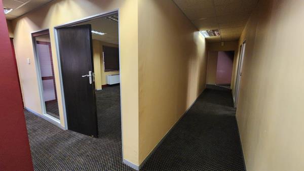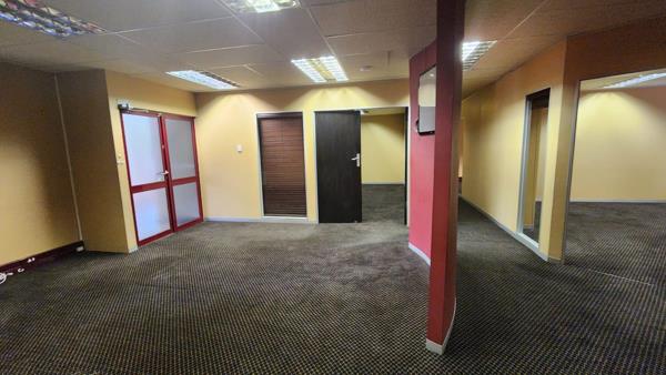 The working space is fitted with carpeted and tiled flooring and windows with blinds allowing natural light to brighten up the office. The 280 square meter working space consists of a reception area, a boardroom, 3 closed offices, a large open-plan space, a kitchen and communal ablutions. It features air-conditioning to contribute to enhancing the air quality in the workplace and fibre connectivity for fast and reliable internet access.