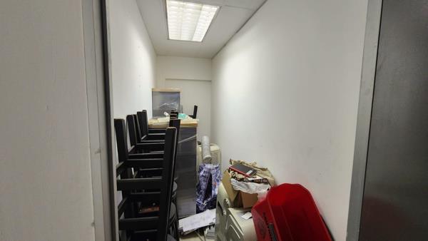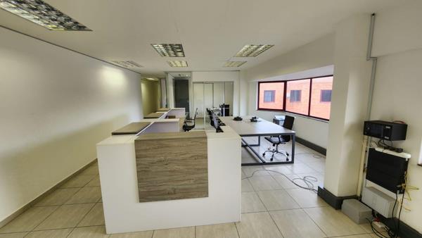 The 206 square meter working space consists of a reception area, 2 closed offices, 2 open plan working spaces, a storage and communal ablutions. It features air-conditioning to contribute to enhancing the air quality in the workplace and fibre connectivity for fast and reliable internet access. The working space is fitted with tiled flooring and windows with blinds, allowing natural light to brighten up the office.