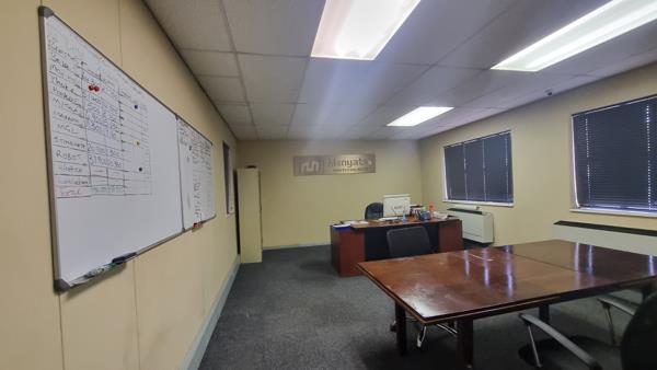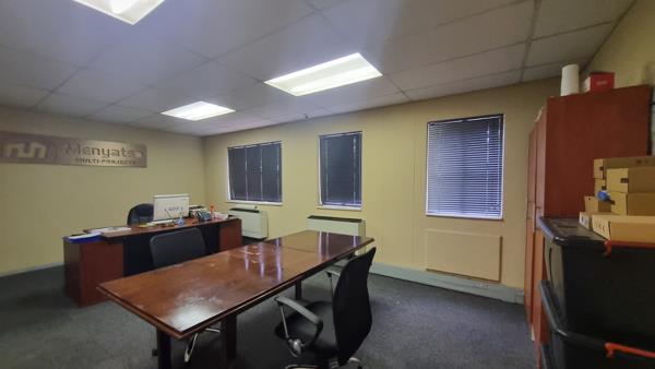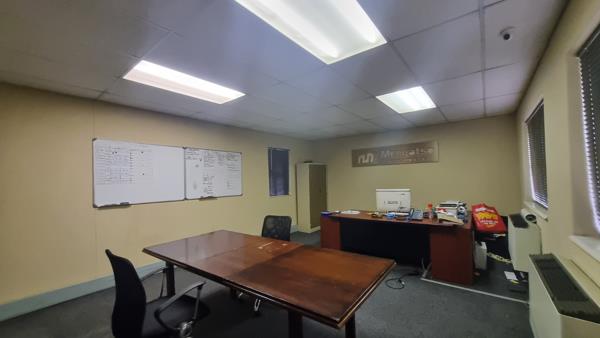 The office space to let is 109 square meters in size, and it consists of reception area, 3 closed office components, a kitchen, and ablutions. It features air-conditioning to contribute to enhancing the air quality in the workplace. The working space is fitted with carpeted flooring and windows with blinds, allowing natural light to brighten up the office.