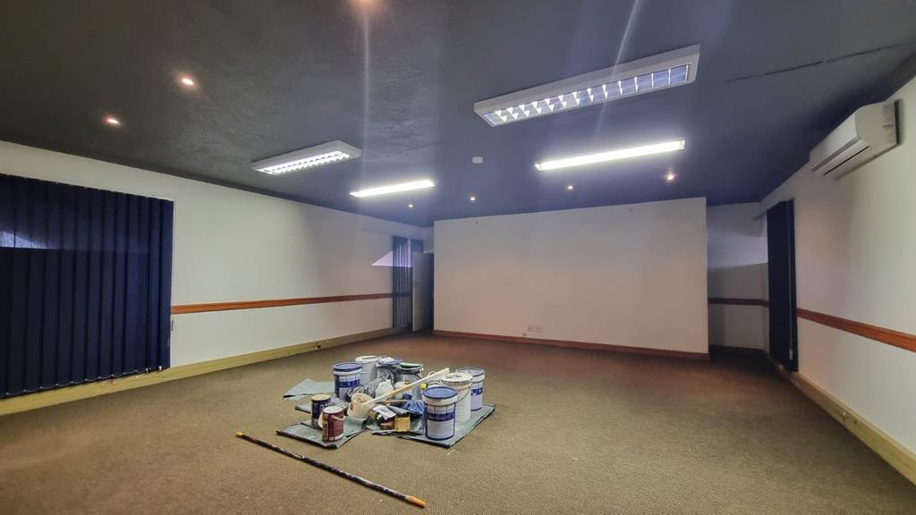 The office suite comprises out of a 100 square metre space where the layout has been sectioned into a communal reception area, a boardroom area, 2 open-plan office areas, a server room, 1 dedicated shared kitchen area and 2 sets of ablutions. The office features air-conditioning, neat flooring, and windows with blinds allowing a great amount of light to come through the office space.