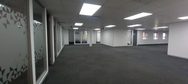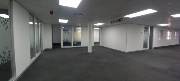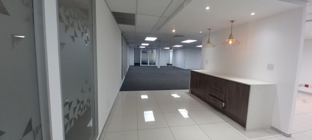An amazing office with a view measuring approximately 769.50 sqm up for grabs! The office boasts two entrances and ideal for an entity with two division/ departments with each using own entrance. What will catch your eye is the fitted own wet kitchen, huge reception fitted with tiles, meeting rooms with frosted glass partitioning, large boardroom with natural lighting, open plan with clean carpets, white painted walls, working aircon units, highly modern to enhance your company.
