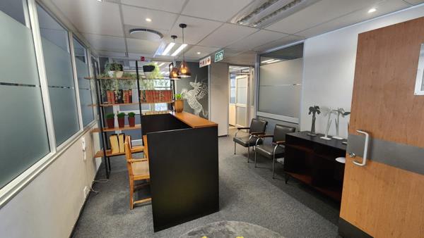 This office unit comprises out of a welcoming reception area, 1 open-plan office component, 4 closed office component, a boardroom and server room, complete with carpet flooring. The unit has been equipped with a kitchen area, air-conditioning, fibre optic cable for quick internet access and ablutions easily accessible to staff. The unit showcases multiple windows that allow for ample natural light to filter in. The building also offers a back-up-generator in case of power outages, an entertainment area and wheelchair friendly options via a fully functioning elevator providing easy access to the offices. The office building has good security provided by access-controlled entrance and exit points, a guard house and on-site security.