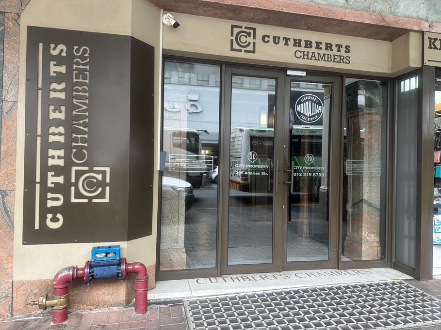 Discover a freshly renovated 92m2 office suite available to let within the well-known Cuthchurch Chambers on Helen Joseph Street in the heart of Pretoria Central. This neat and modern office offers superb main-road exposure, making it ideal for businesses seeking visibility and convenient access. The building is surrounded by major transport routes, including Paul Kruger Street, Thabo Sehume Street, Boom Street, and Visagie Street, ensuring effortless connectivity for staff and clients alike. Nearby amenities include banks, retail outlets, restaurants, and key commercial landmarks within the Pretoria CBD.