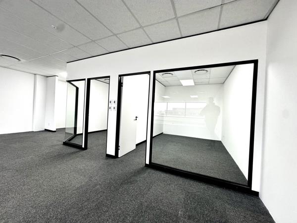 This beautiful office space consists of a reception area , two neatly fitted out offices and big open plan space with views overlooking the Menlyn Maine Area.