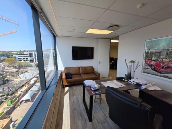 - Two offices feature large windows with expansive views of Menlyn Maine and ample natural light