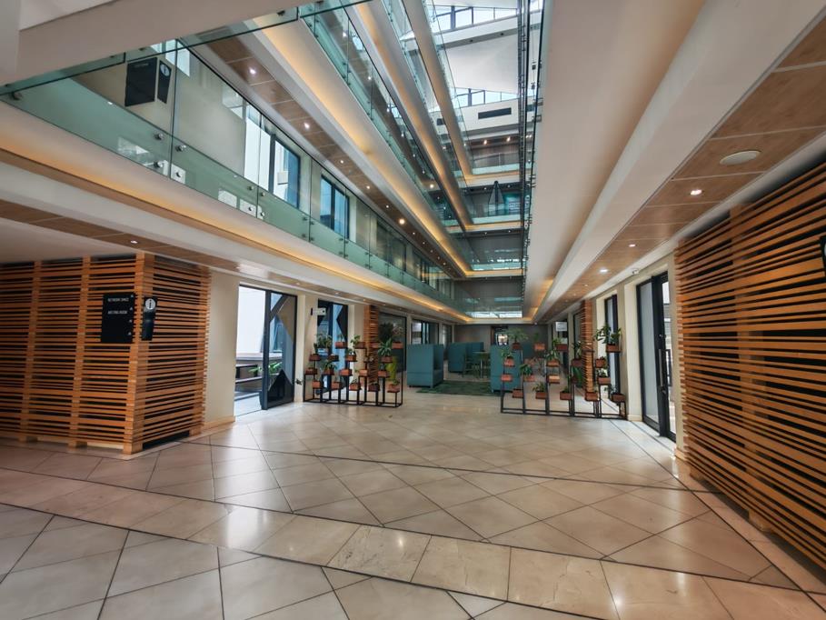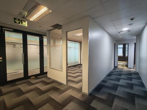 This neat office unit comprises out of a reception area, 4 closed offices, 2 open-plan office areas, 3 boardrooms, with a server room or storeroom. This office space also comprises out of a dedicated kitchen area, with a balcony area, and 2 sets of communal ablutions. The office features central air conditioning, neat laminated flooring, and windows with blinds that allow natural light to filter in. The facility offers twenty-four hour security, access-controlled entrance and exit points with an on-site guard house, a backup power supply in case of any power outages. The facility also offers an elevator creating a wheel-chair friendly corporate environment, fibre optic cables, the property has excellent signage opportunities, this will cultivate an ideal exposure opportunity within the area and surrounds.