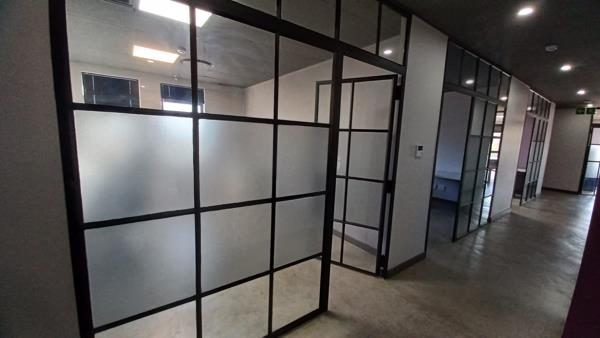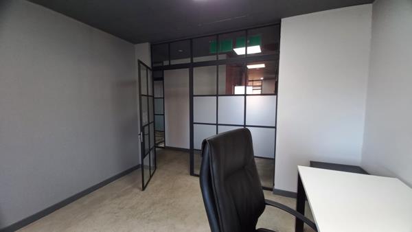 The office is move-in ready and neatly configured with a private office area and a stylish boardroom. Tenants enjoy access to a communal kitchen and well-maintained ablution facilities within the building. High-quality finishes include glass panel partitioning, neat tiled flooring, air conditioning, fibre-ready connectivity, and large windows fitted with blinds that allow ample natural light to flow throughcreating a comfortable and productive work environment.