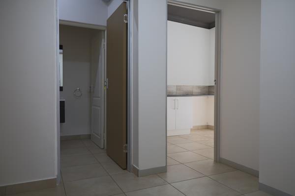 The office includes a convenient bathroom and a spacious kitchen, perfect for taking breaks or preparing meals during the day.