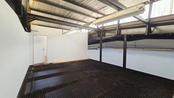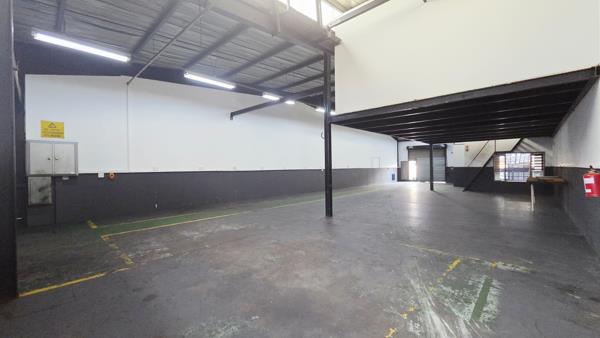 The warehouse boasts a high roof, creating excellent vertical storage potential, while the mezzanine floor adds valuable additional workspace or storage capacity. Its versatile layout allows for efficient operations across warehousing, light manufacturing, or distribution uses.