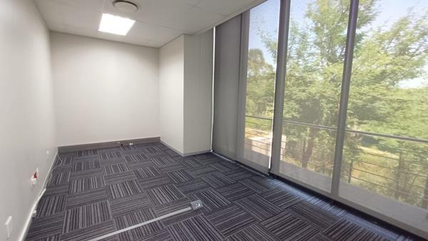 This A- Grade office is based in the thriving Silver lakes suburb, in the Pretoria area. This 157 square metre office space consists of 6 closed office components, a server room and communal facilities that include a large boardroom that can be booked, a reception area, a kitchen and ablutions. The working space is fitted with carpeted flooring and large windows, allowing natural light to brighten up the office. It features air-conditioning to contribute to enhancing the air quality in the workplace.