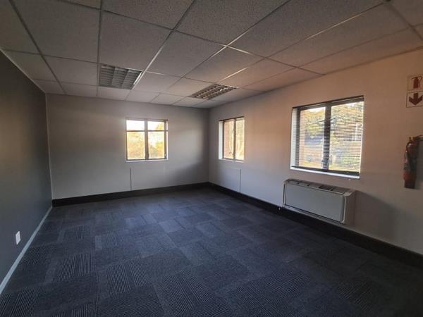 This U-shaped office block is located within a secure Office Park complex, offering 24-hour security and excellent accessibility from both the N1 and M14 highways. Positioned near to the Flora Life Clinic and conveniently near Ontdekkers Drive, the property is ideally situated for business operations. The premises offer a generous 489 m of office space, featuring a beautiful fitout with glass partitions and a combination of open-plan areas, private offices, boardrooms, and meeting rooms. A fully equipped kitchen is complemented by a large adjacent canteen area that opens onto a balcony, while the welcoming reception area benefits from ample natural light through large windows offering attractive views. The offices are currently white-boxed, providing a flexible canvas for customization. Vertical access is provided by both lifts and staircases to this first floor unit, and the building is supported by two generators delivering a combined power supply of 500 kW. Internal dry walling may be removed to allow for reconfiguration of the space according to specific tenant requirements. Ablution facilities are located within the common areas, and staff also benefit from a large outdoor seating area. The gross rental includes operating costs as well as estimated rates and taxes. A range of parking optionsbasement, covered, and open baysare available at an additional cost. The buildings strategic location offers immediate access to major roads and highways. The space is available for immediate occupation. Tenant incentives include a one-month beneficial occupation period for leases of three years, and a two-month period for leases of five years. Tenant installation allowances are subject to lease terms. Utility and generator charges are billed separately. For more information, contact Ross Campbell.