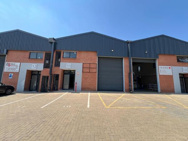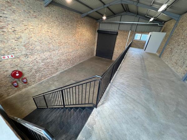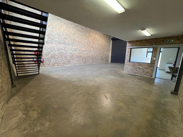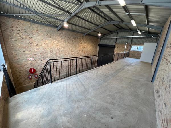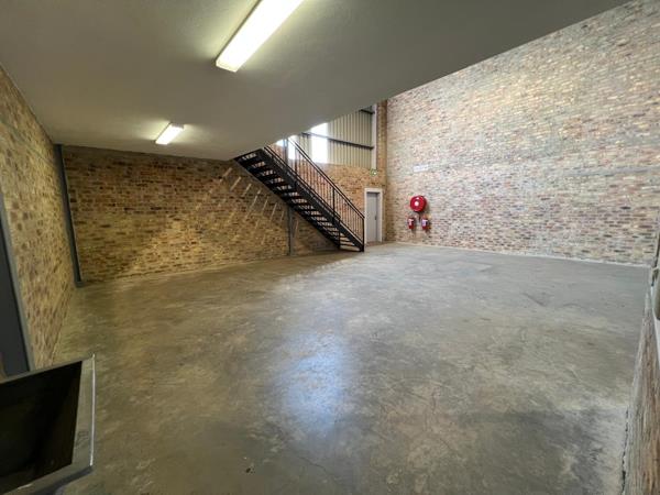 The space also includes 3-phase power, a neat reception or office area, two bathrooms, and a kitchenette for staff convenience. A solid concrete mezzanine level provides additional storage or workspace without compromising ground-floor capacity. This unit is a clean, practical, and secure industrial solution in a prime location, perfect for businesses looking to establish or expand in Laserpark.