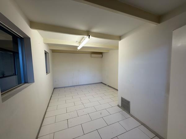 This well-maintained unit is available immediately and offers excellent functionality for a variety of business needs. Equipped with 3-phase power and prepaid electricity, the premises include a welcoming reception area, two offices, a storeroom or lab, as well as double toilet facilities and a kitchenette.