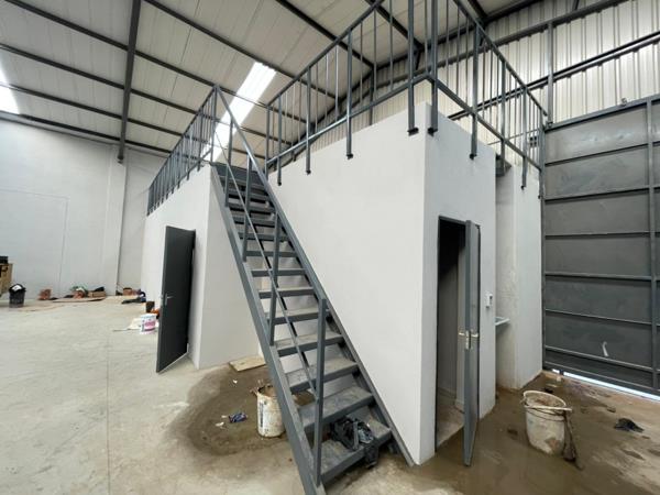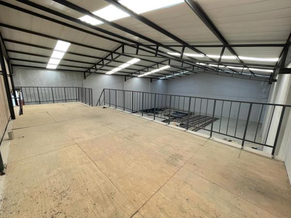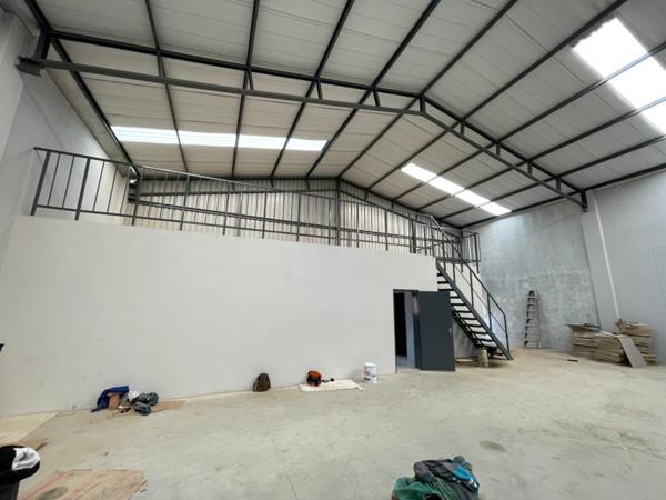 Pristine, brand new industrial unit available for rent in Cosmo Business Park with excellent security measures in place. The unit comprises of an open plan warehouse with a toilet and basin. Ground floor office with kitchenette and ablutions. The first floor can either be used as warehouse mezzanine or be converted into an office with dry walling, laminate or carpet floors. There is one sliding shutter door for truck access loading and offloading to and out of the warehouse. There''s three phase 80 amps power supply.