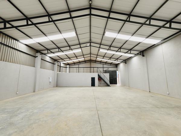 A newly developed industrial unit measuring approximately 432m2 is available immediately to let in the secure Cosmo Business Park. This modern space includes a well-proportioned warehouse, a reception area, an office component, a kitchenette, restrooms, and a mezzanine level, all thoughtfully designed for functionality and operational efficiency. The unit features an impressive height of about 7.5 meters to the eaves and includes a single industrial sliding door that allows for easy access. It is powered by an 80 Amp three-phase electrical supply provided directly by Eskom. A monthly levy of R518.00 excluding VAT applies.