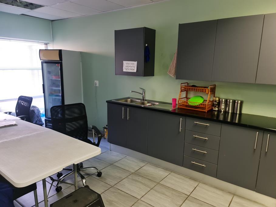 This office pocket is located on the ground floor and features an open-plan layout with a spacious kitchen area that opens onto a 59 m2 patio.