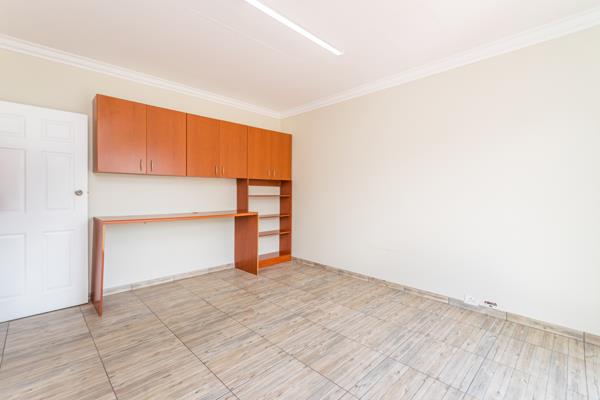 Well-designed first-floor professional suite ideal for 45 staff. The space includes two large private offices, an open-plan staff area, reception, well-fitted kitchen, own bathroom, and storage, with pleasant views. Situated in a secure office park with 247 manned security, access control, ample parking, multiple fibre providers, and access to a communal boardroom. Conveniently located in Helderkruin, close to major amenities and serving surrounding West Rand suburbs.