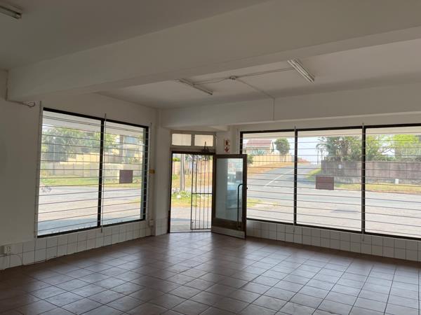 Corner shop with street frontage on 2 sides. Great for office or retail space.