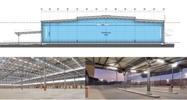 The warehouse will be designed with efficiency in mind, featuring an impressive eaves height of 13.5 meters, extendable up to 22 meters if required, allowing for maximum storage capacity. Natural light will flood the space, complemented by sprinklers, foil insulation, and whirly birds for excellent ventilation. The facility will be equipped with cross-docking capabilities and is completely column-free for unobstructed movement.