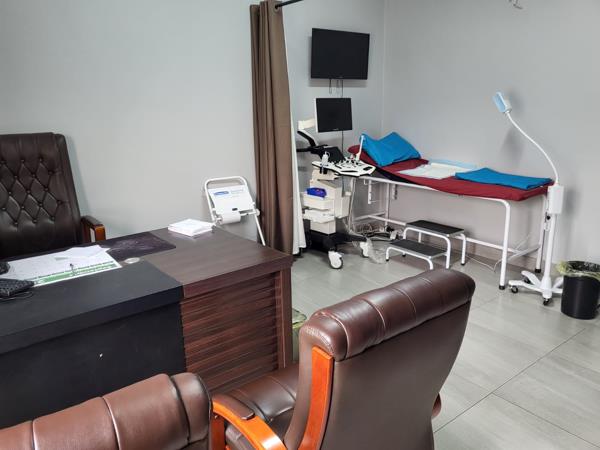 Medical suite available opposite Chatsmed Hospital. Includes Reception area, waiting and filing office, Storage and Practioners suite. Private bathroom as well as patients bathroom. Kitchen with appliances. Parking on and off premises. Generator on premises incase of loadshedding. Ideally situated on the main road of Woodhurst.
