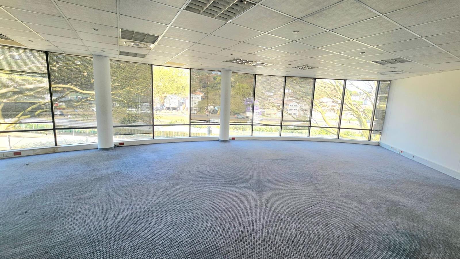 Modern open-plan office space with stunning views in a state-of-the-art building.