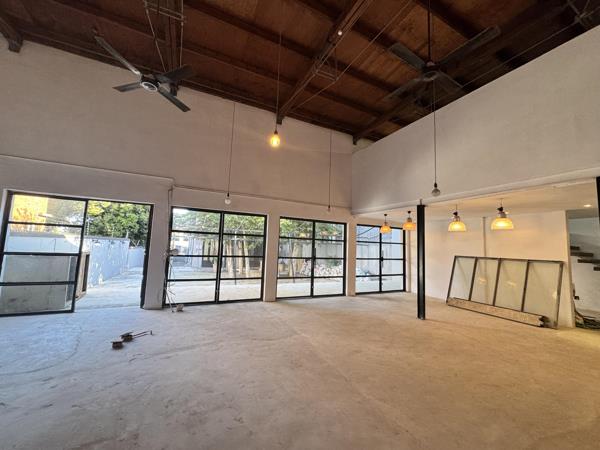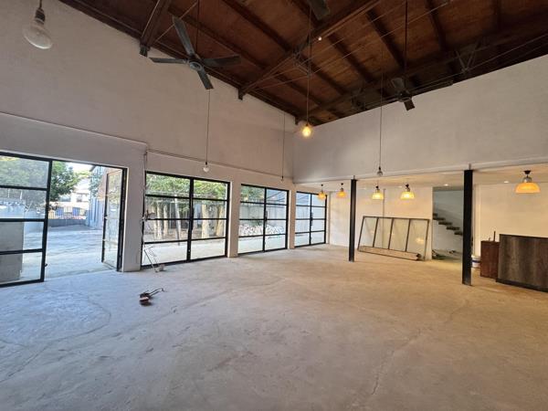 Tucked away at the back of a busy shared property on vibrant Gladys Mazibuko (formerly Marriott) Road, this spacious and well-designed 180 sqm unit offers the perfect balance of functionality and flair. With two levels and thoughtfully designed interiors, its ideal for a variety of businesses from creative studios and salons to boutique eateries and light industrial use.