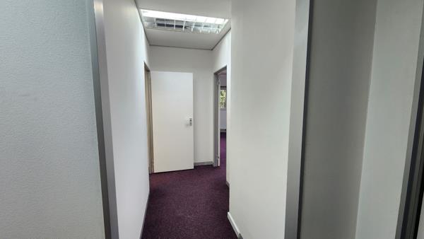 This unit is situated on the third floor. The layout includes an open-plan area with glass-partitioned offices. Has lots of natural light, including screeded floors