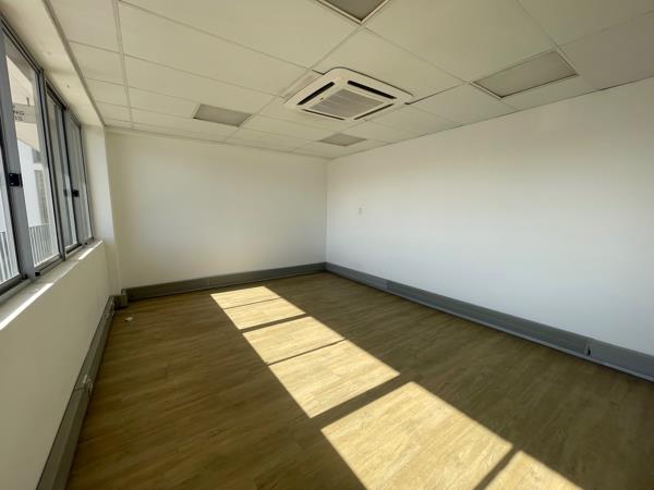 This unit features two offices with modern screed floors, providing a sleek and professional environment. The rental rate is R150/m, excluding parking, utilities, service costs, and VAT.