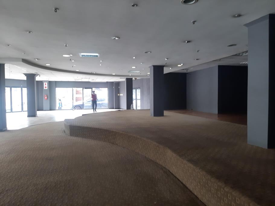 This renovated retail shop with new floor tiles, custom designer ceilings with downlighting.