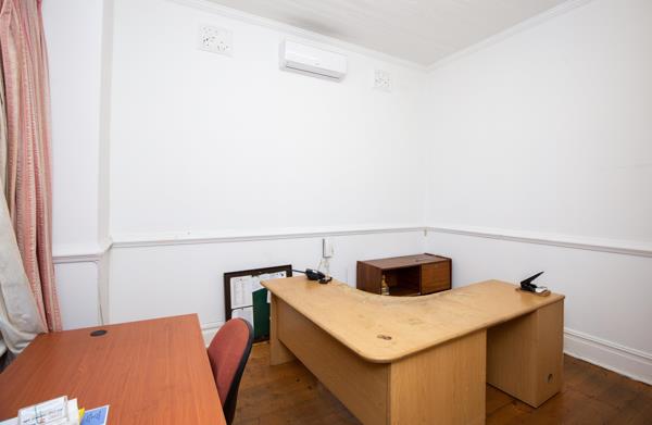 The house comes with a large boardroom and 3 other offices, a boardroom, storage, a staff relaxation area, and a fin pause area and kitchen. The are ablution facilities in the main building. Outside is a filing room that can be used for various options.As well as a small flat let.