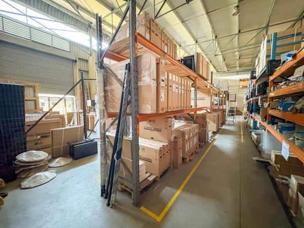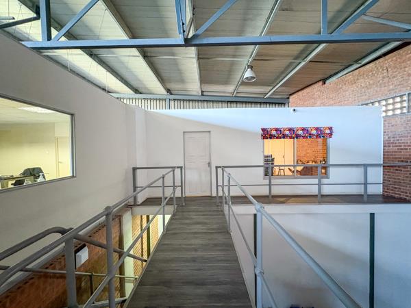 563 sqm warehouse available to rent in Riverside Industrial Park at 74 Prince Mhlanga offers security and privacy. The unit consists of 1 x roller shutter door, a small office component and great height to eaves for racking.