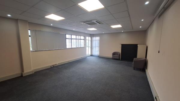 These upmarket and airconditioned offices in Riverhorse, measure approximately 410m2 and are available immediately - at under R100 per m2. They are on the first floor, and have a combination of large open plan space, smaller offices, and a neat boardroom/training room. There is also a great balcony area, as well as very neat ablutions and kitchen. 7 Parking bays (3 covered and 4 open) are included in the rental. There is backup water supply and Generator back-up power which is subject to terms and conditions with a levy of R1 924 per month plus diesel used. There is electrified fencing and a motorized gate.