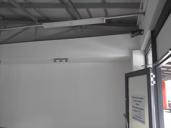 The current configuration includes a drywalled section at the rear, ideal for use as a private office or storage area, enhanced by natural light from large windows. Should a tenant prefer, this partition can be removed to maximize the available floor space.