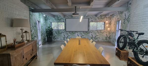 Beautiful entertainment area sheltered under palm trees surrounded by birds nesting and singing, for those coffee and lunch breaks, and social gatherings, with a gas braai and plenty of seating for your team building get-togethers.