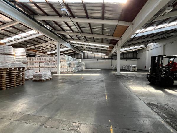 Secure, neat Industrial Park with Superlink access is offering this 1639 sq.mt Factory/Warehouse space to Let. Unit offers 4 Roller door, 1* Dock leveller and 4-6 m internal height. Rental R143,412.50 ex Vat and utilities. Availability to be discussed.