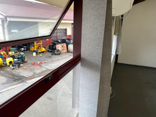 The unit has three phase power and it has good height and a large roller shutter door onto the driveway.