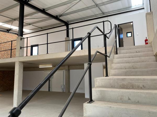 * First-floor mezzanine suitable for extra storage or conversion into office space, complete with an ablution and a private balcony